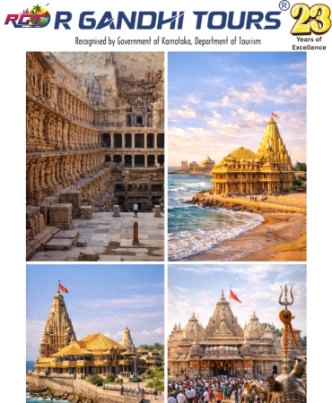Departure from Bengaluru to Ahmedabad by morning flight and Proceed towards Vaishnodevi mandir, Adalaj (Stepwell), Sabarmati Ashram,Akshardham and Night halt.